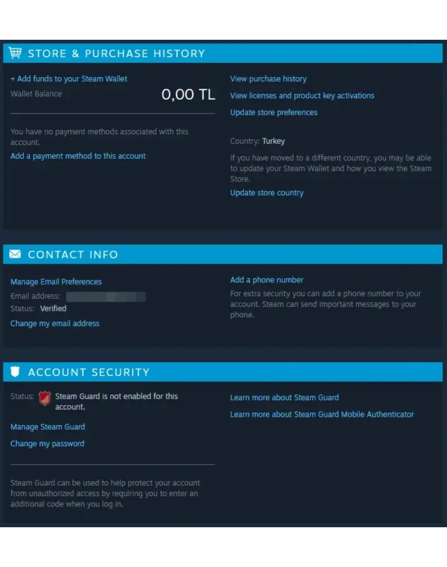 New Steam Account : Turkey Region (Full access)