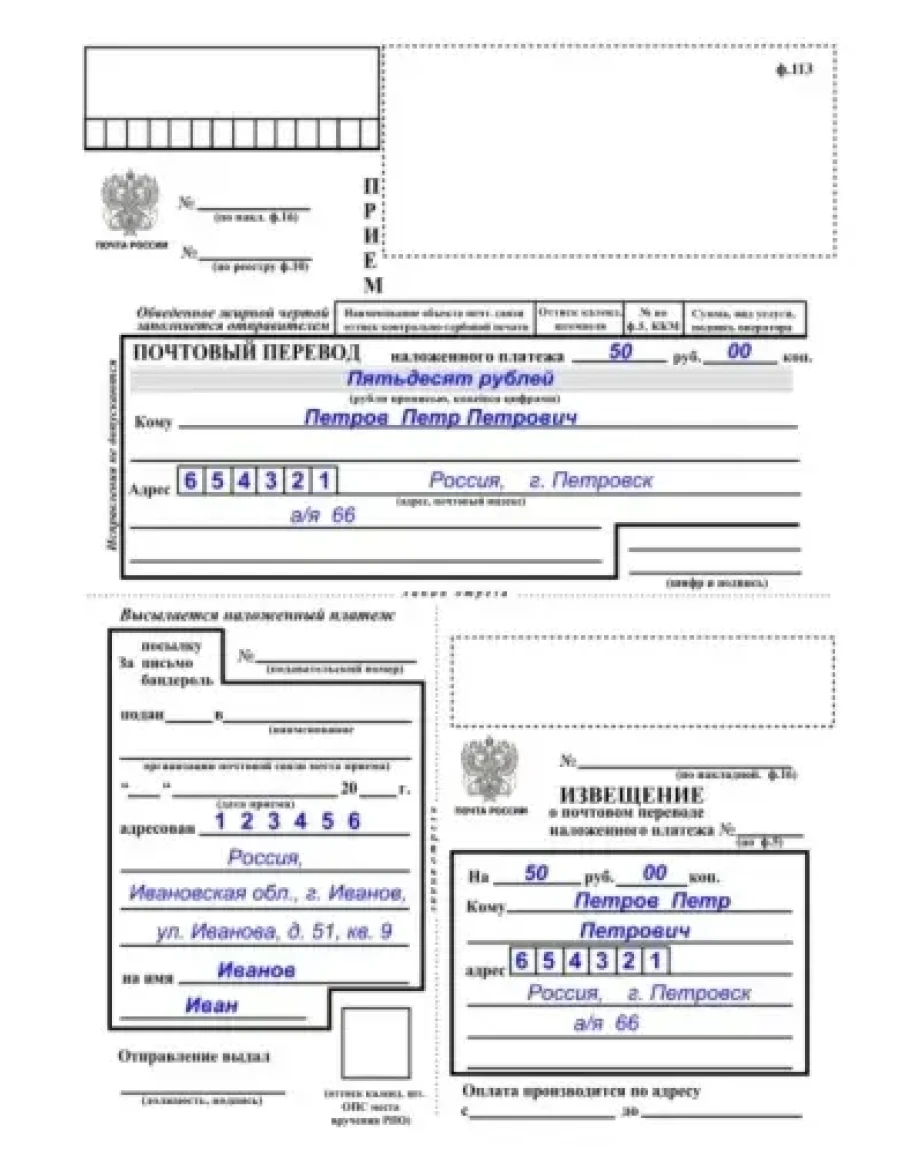 Бланк почты России ф.113 (почтовый перевод наложенного платежа)