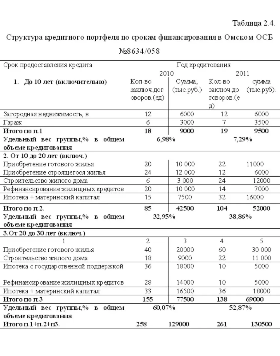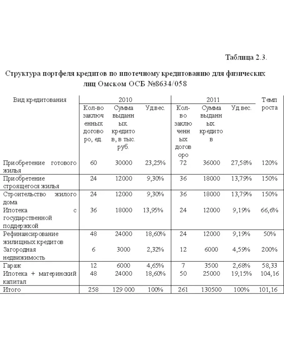 2.2. Организации ипотечного кредитования в Омском ОСБ №8634/058 45