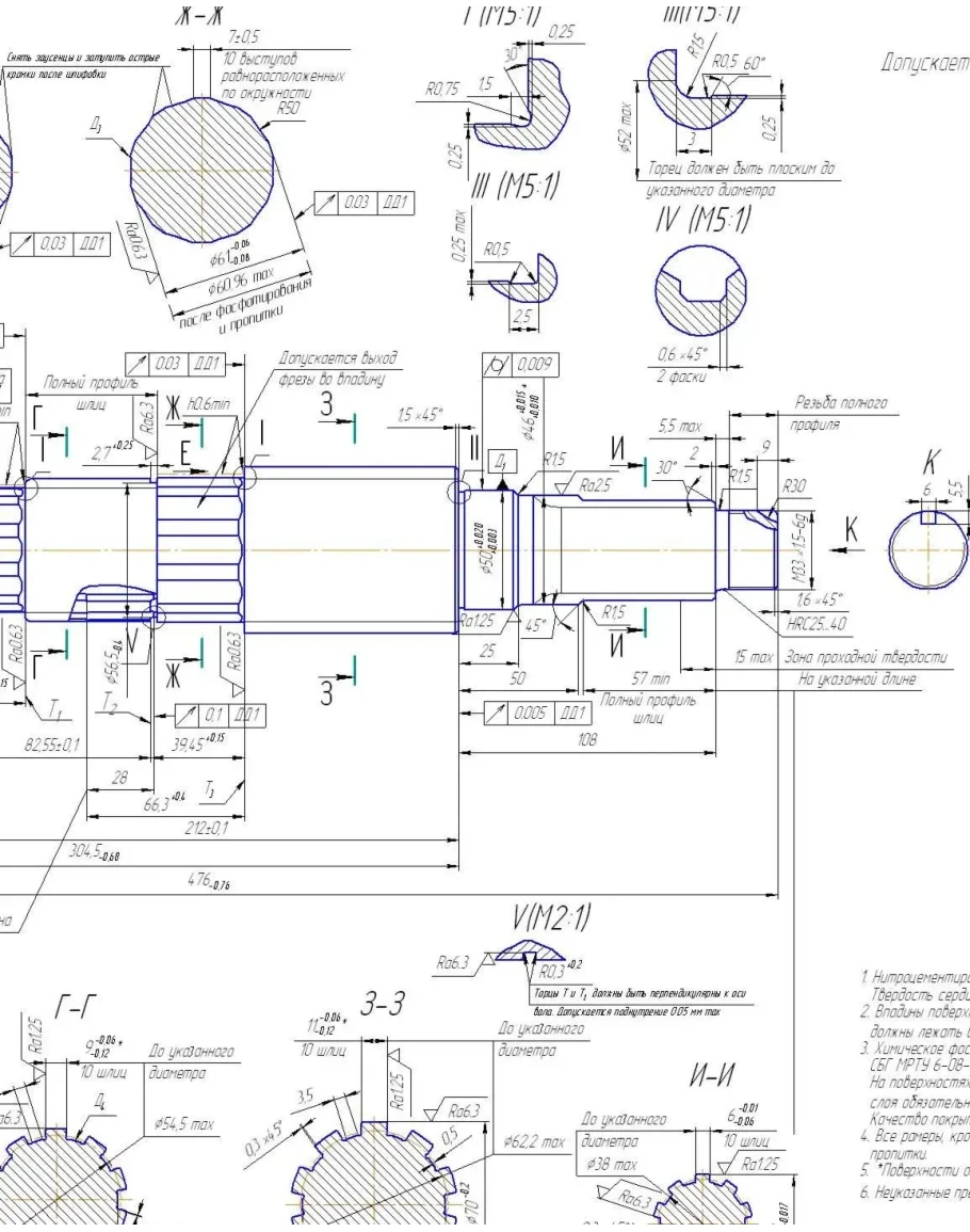ЗЫ. Вал вторичный КПП грузового автомобиля (ЗиЛ-130)
