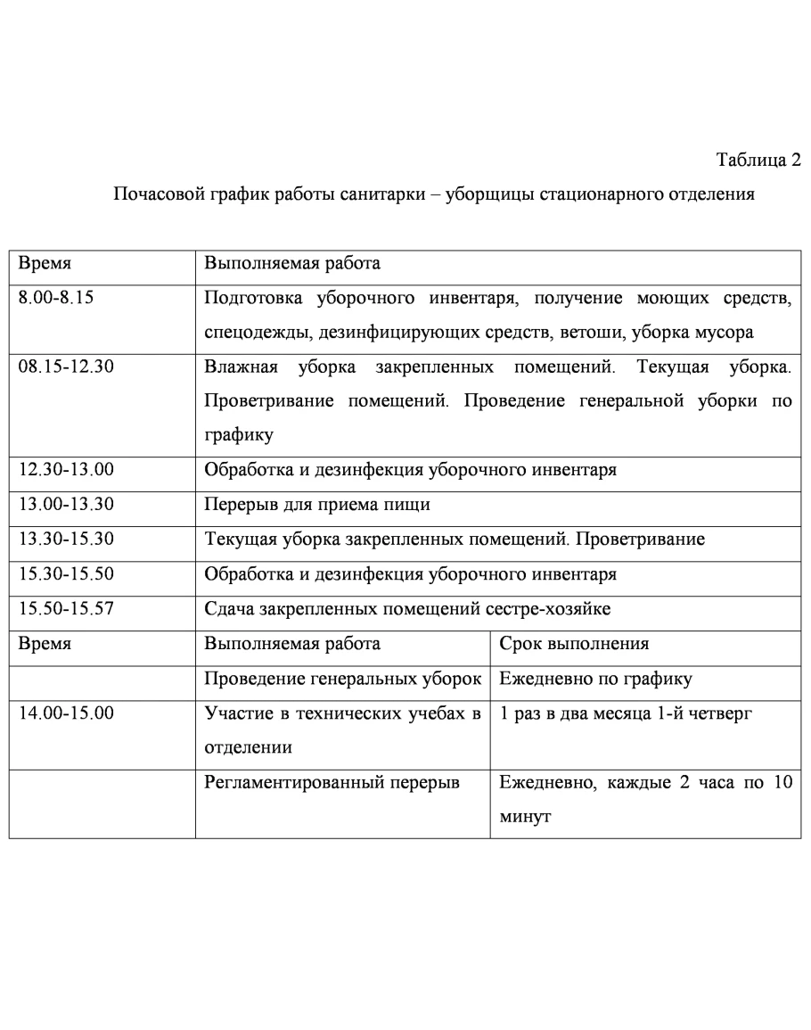 2.2. Режим труда и отдыха санитарок-уборщиц 20