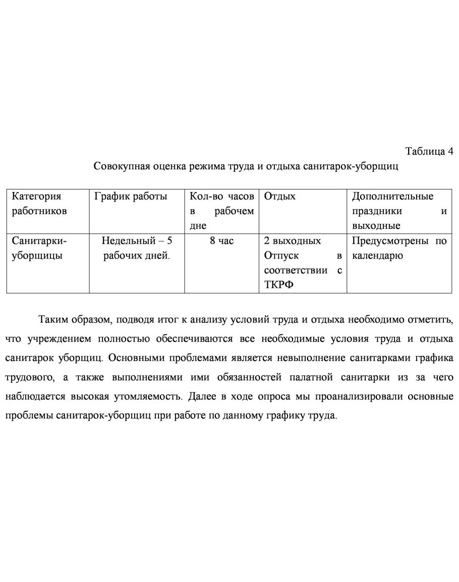 2.4 Исследования режимов труда и отдыха санитарок уборщиц в БУЗОО "КМХЦ МЗОО" филиала зеленая роща 25