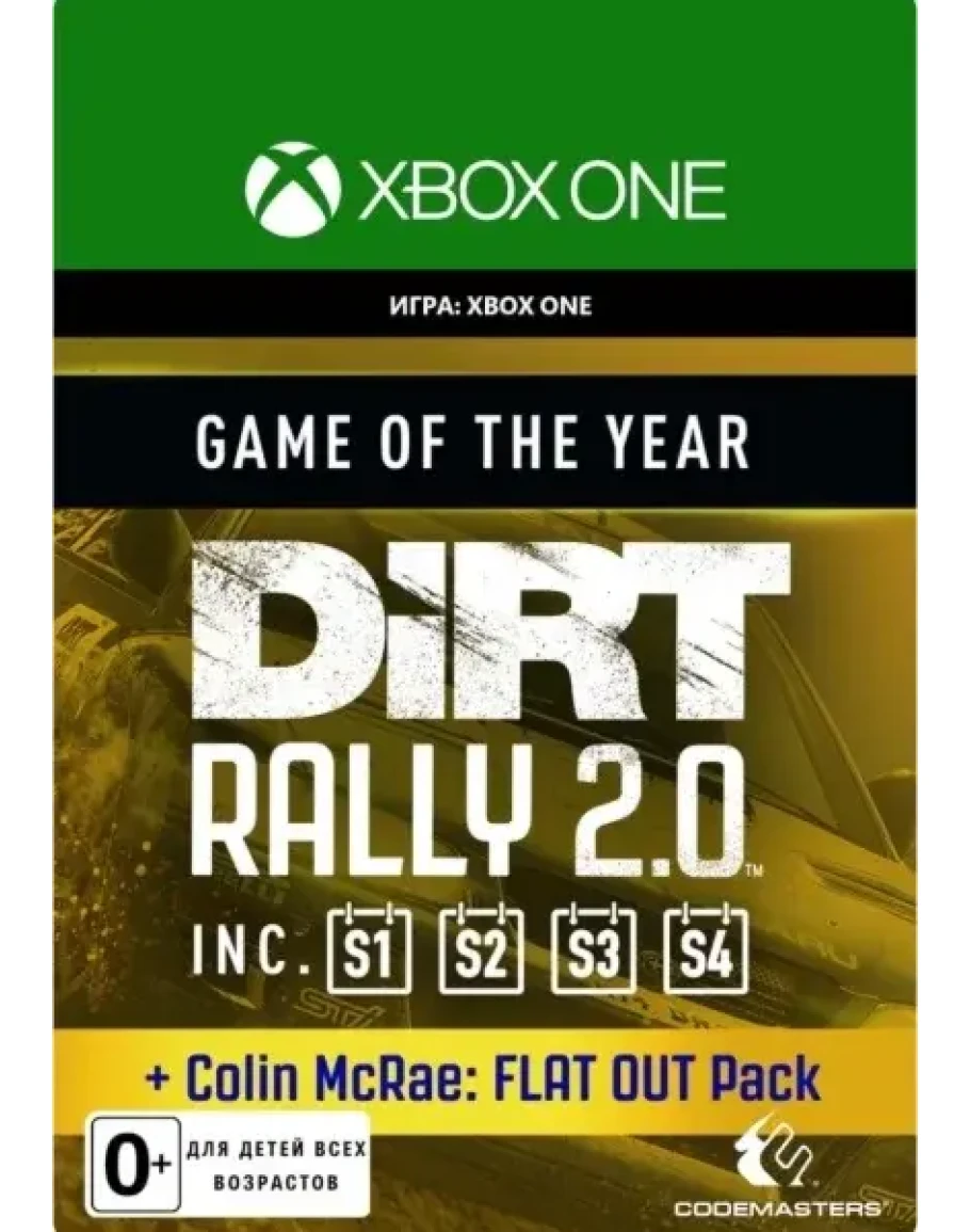 Dirt Rally 2.0 и все 4 сезона, добавленные после выпуска, а также набор Колина Макрея FLAT OUT.