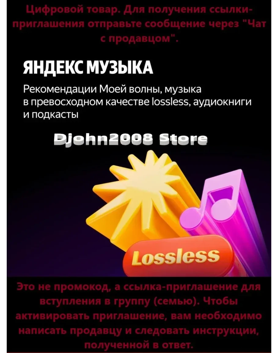 ПОСЛЕ ОПЛАТЫ ВЫ ПОЛУЧАЕТЕ УНИКАЛЬНЫЙ КОД, КОТОРЫЙ ОТПРАВЛЯЕТЕ НАМ В ЧАТ, В ОТВЕТ МЫ ОТПРАВИМ ВАМ ГОТОВУЮ ССЫЛКУ-ПРИГЛАШЕНИЕ НА 1 МЕСТО В СЕМЕЙНУЮ ПОДПИСКУ ЯНДЕКС ПЛЮС НА 12 МЕСЯЦЕВ.