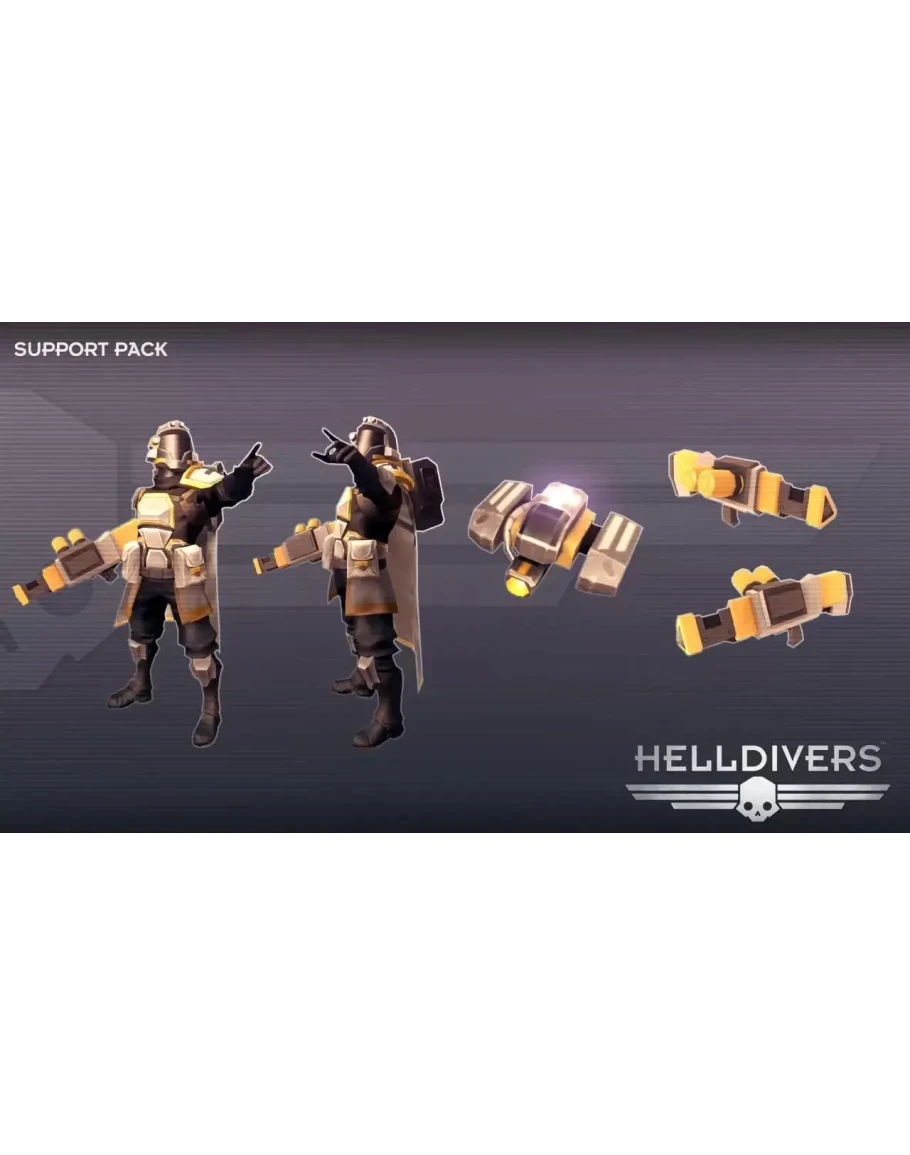 PRODUKTY ZAWARTE W TYM PAKIECIE: HELLDIVERS™ - Commando Pack HELLDIVERS™ - Defender Pack HELLDIVERS™ - Support Pack HEALTH WARNINGS WARNING: IF YOU HAVE A HISTORY OF EPILEPSY OR SEIZURES, CONSULT A DOCTOR BEFORE USE. CERTAIN PATTERNS MAY TRIGGER SEIZURES WITH NO PRIOR HISTORY. BEFORE USING AND FOR MORE DETAILS, SEE IMPORTANT HEALTH AND SAFETY WARNINGS https://www.playstation.com/en-us/legal/health-warning/ PRIVACY POLICY https://www.playstation.com/en-us/legal/terms-of-use/op-privacy-policy/ USER AGREEMENT Software subject to license https://www.playstation.com/legal/op-eula/ ©2015 Sony Interactive Entertainment LLC. HELLDIVERS is a trademark of Sony Interactive Entertainment LLC.