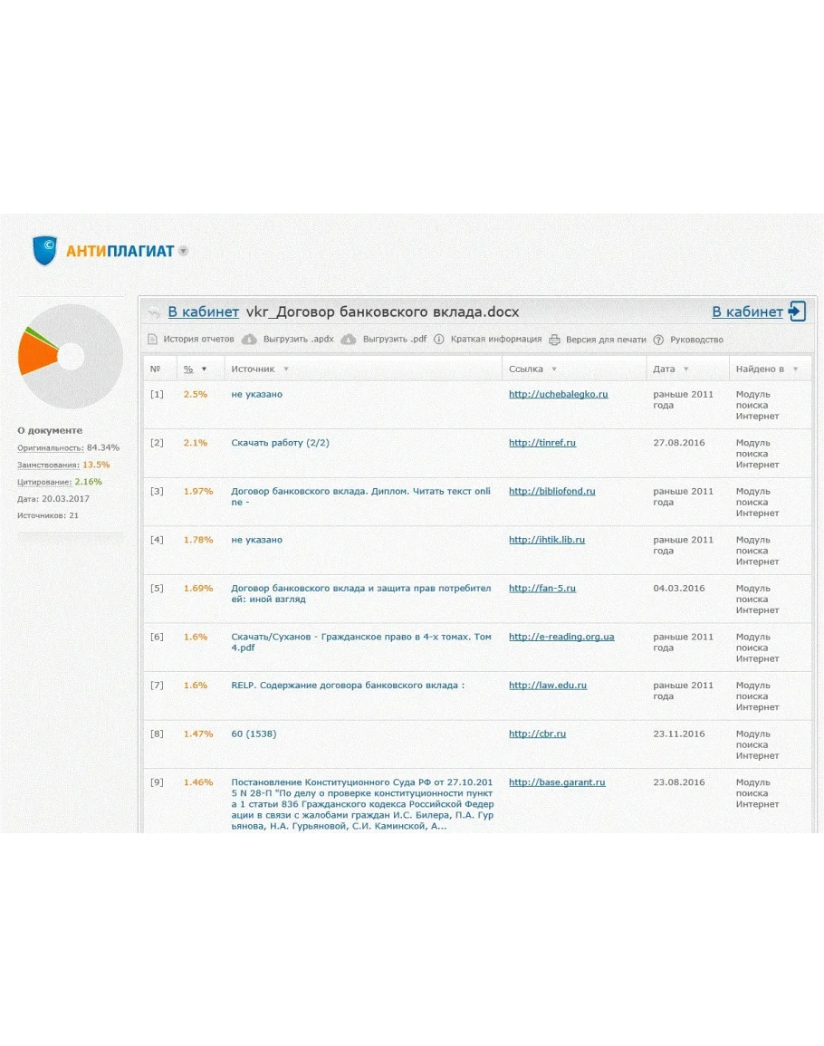 Готовая дипломная работа на тему: Договор банковского вклада выполнена в 2017 году, уникальность (антиплагиат) - 84%.