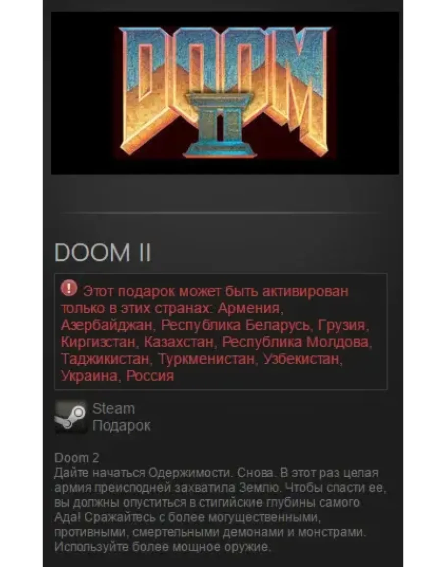 DOOM II (Steam, Tradable Gift, RU/CIS)