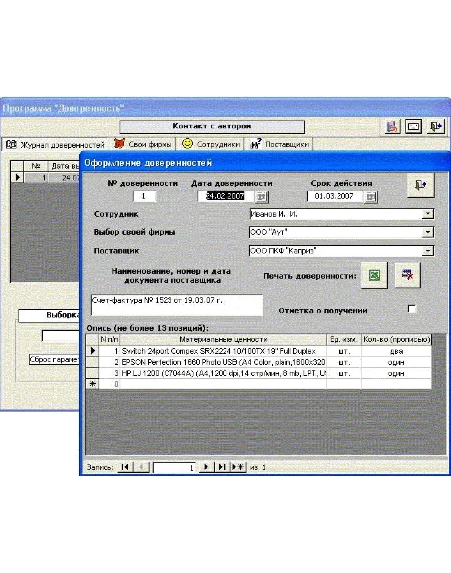 • Вести учет всех сотрудников, которым выдавалась доверенность, и использовать их данные при оформлении новых