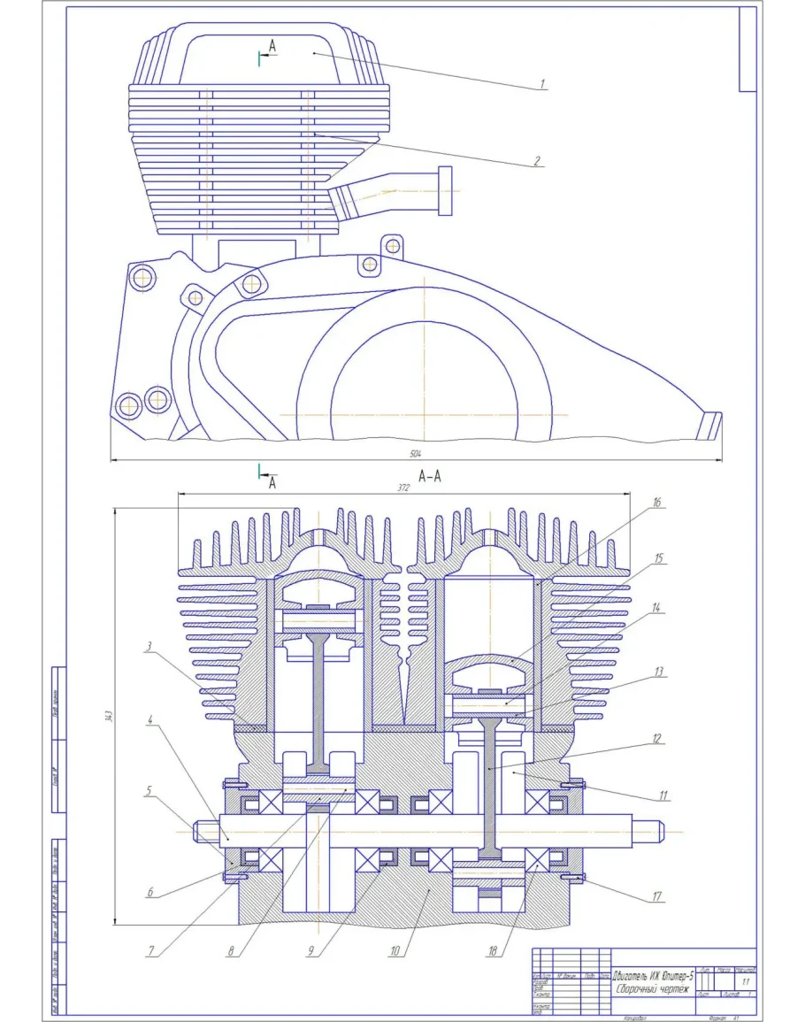 Двигатель Иж Юпитер-5. Сборочный чертеж. Формат Ф1