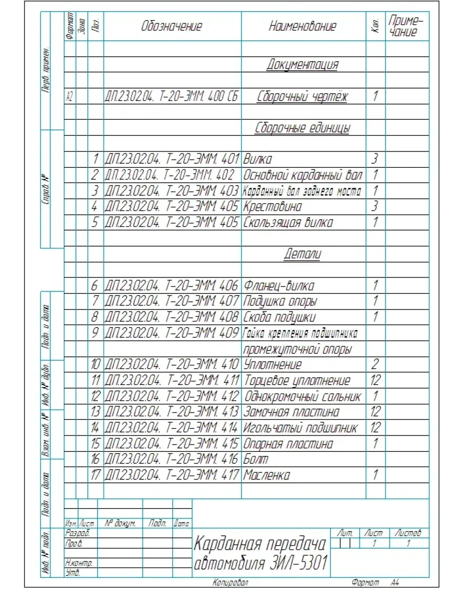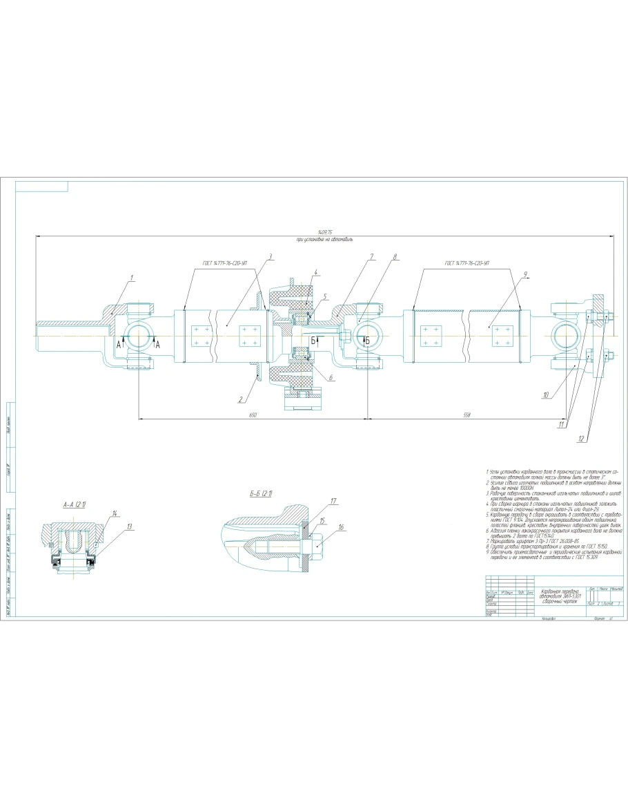 Чертеж Карданная передача автомобиля ЗИЛ-5301 + спецификация