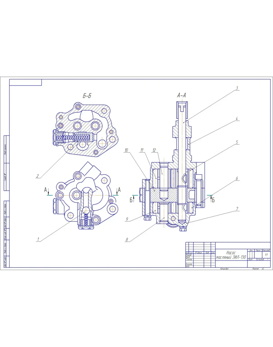 Чертеж насос масляный ЗИЛ-130. Сборочный чертеж + спецификация