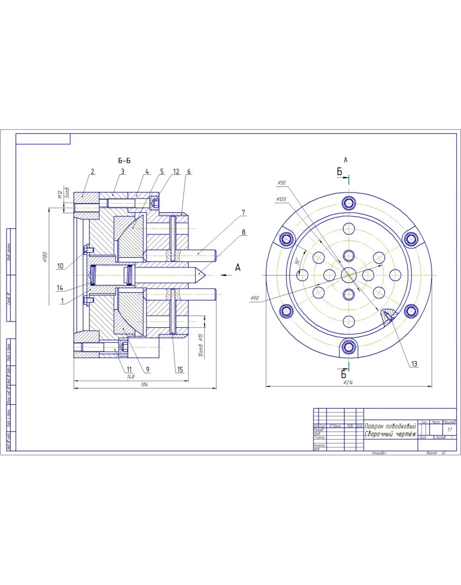 Чертеж Патрон поводковый. Сборочный чертеж. Формат А2