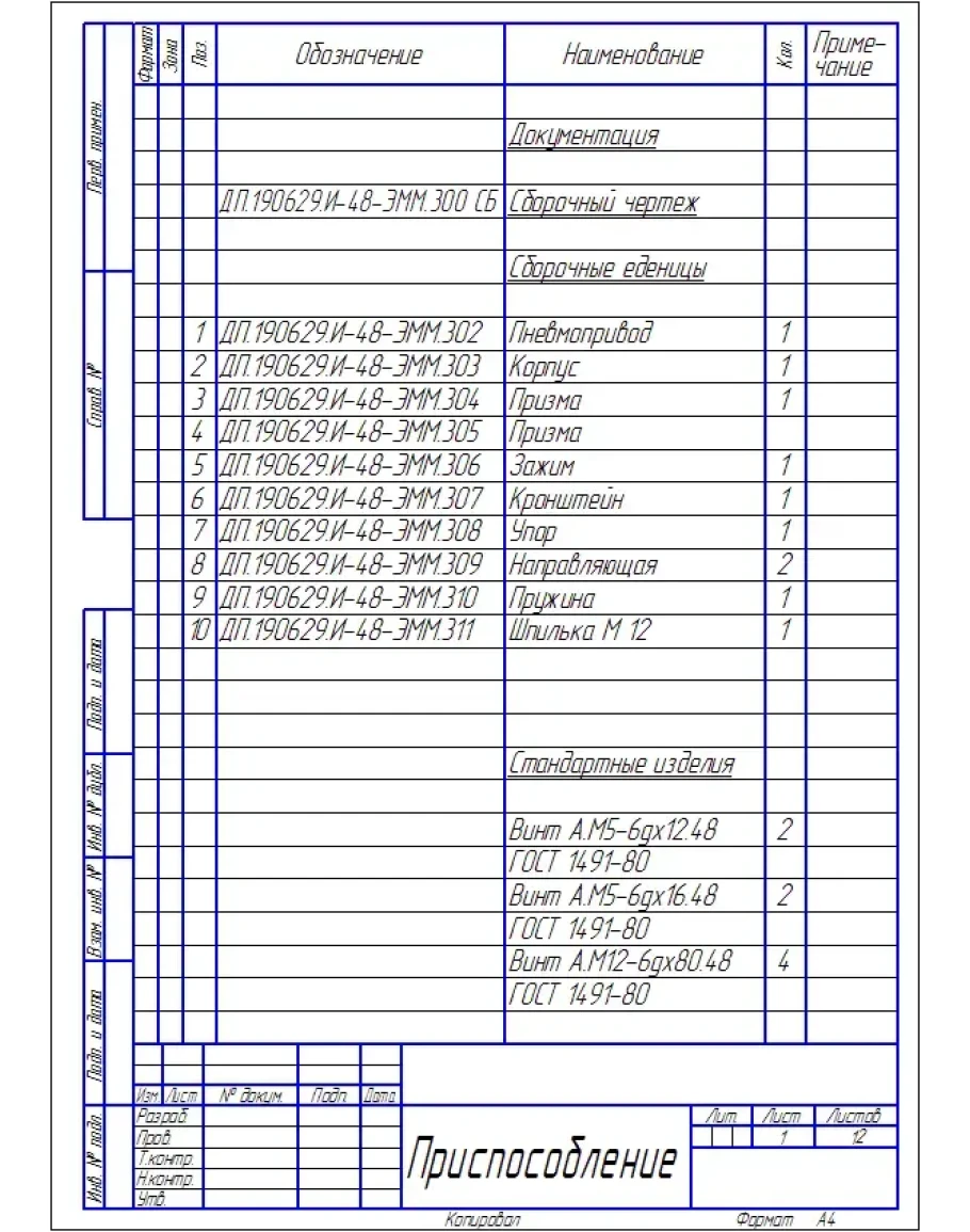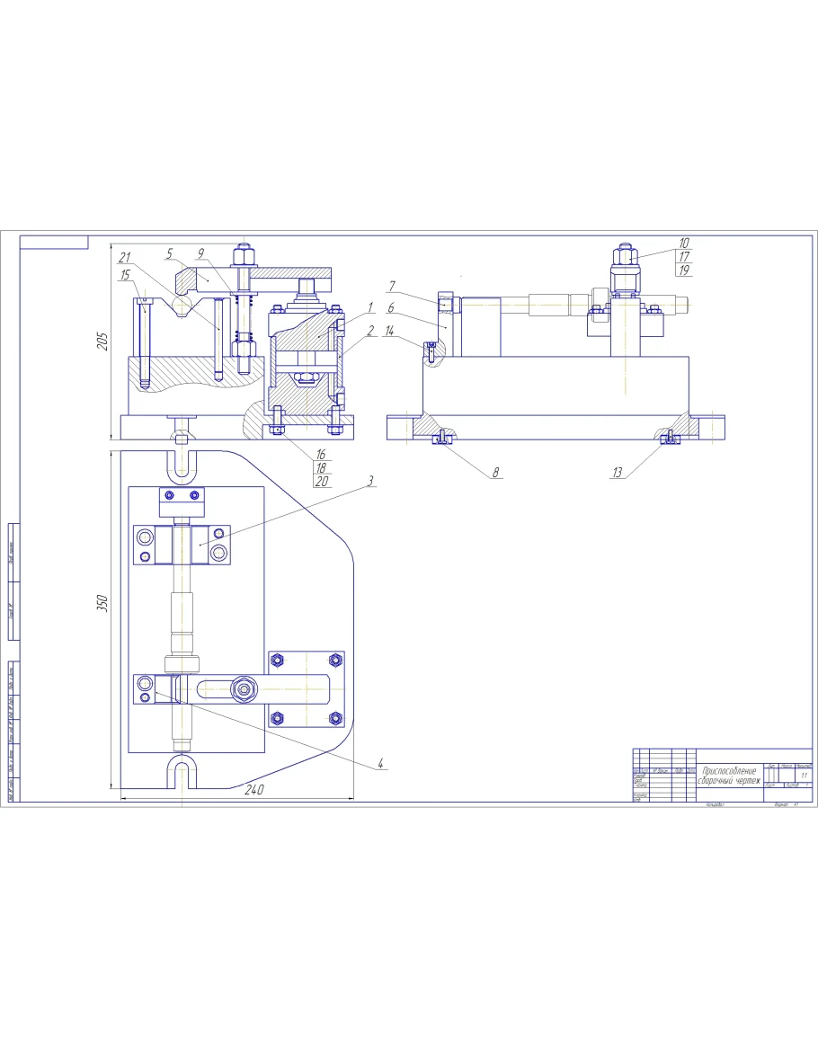 Чертеж Приспособление зубофрезерное на формате А1 + спецификации к сборочному чертежу.