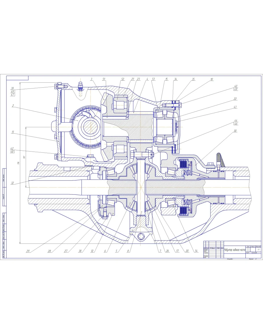 Редуктор заднего моста автомобиля Урал. Сборочный чертеж + Спецификация деталей.