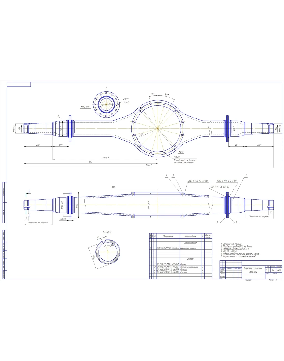 Чертеж Редуктор заднего моста автомобиля ГАЗ-53 + чертеж картера заднего моста в сборе на формате А1