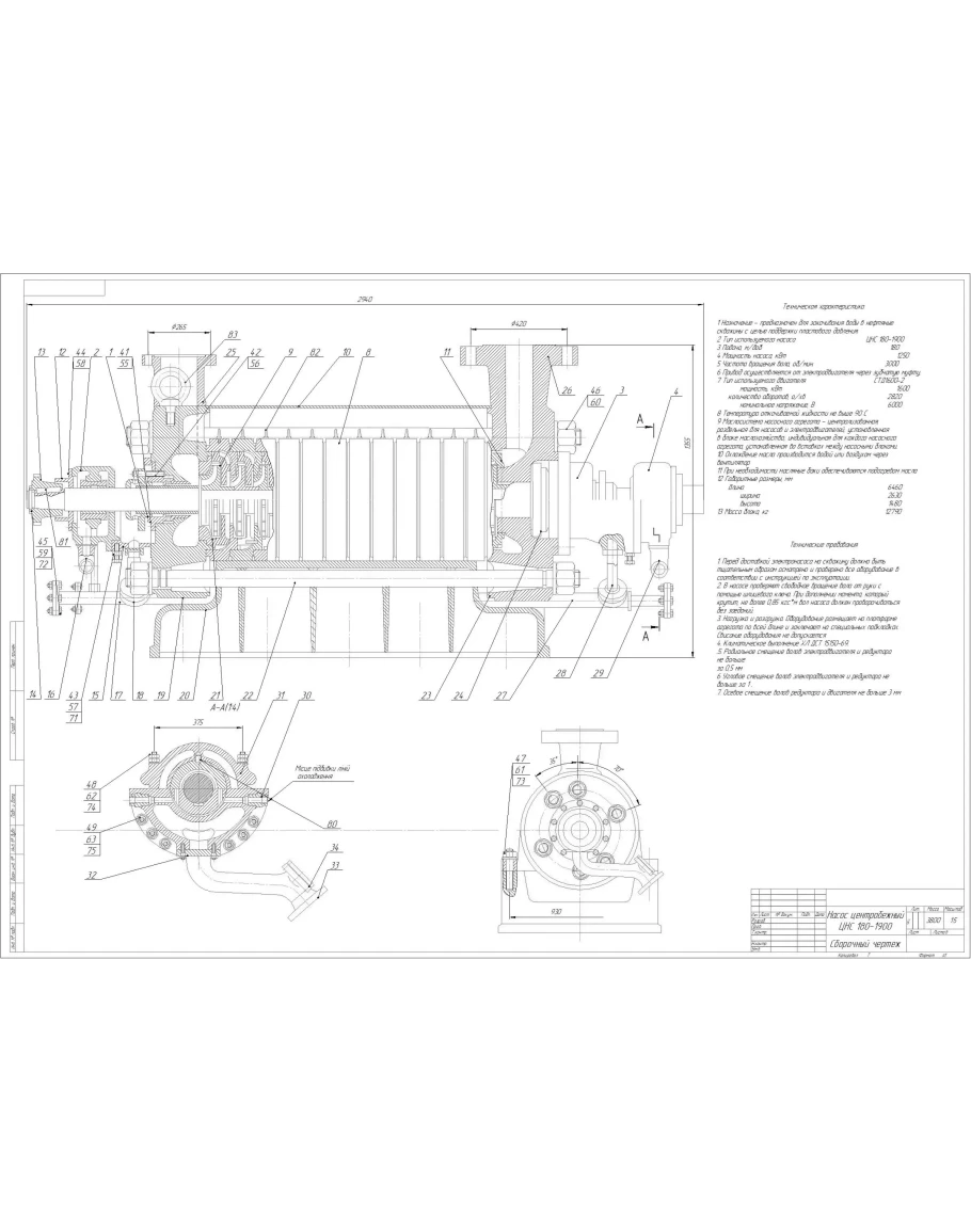Чертеж сборочный Насос центробежный ЦНС 180-1900