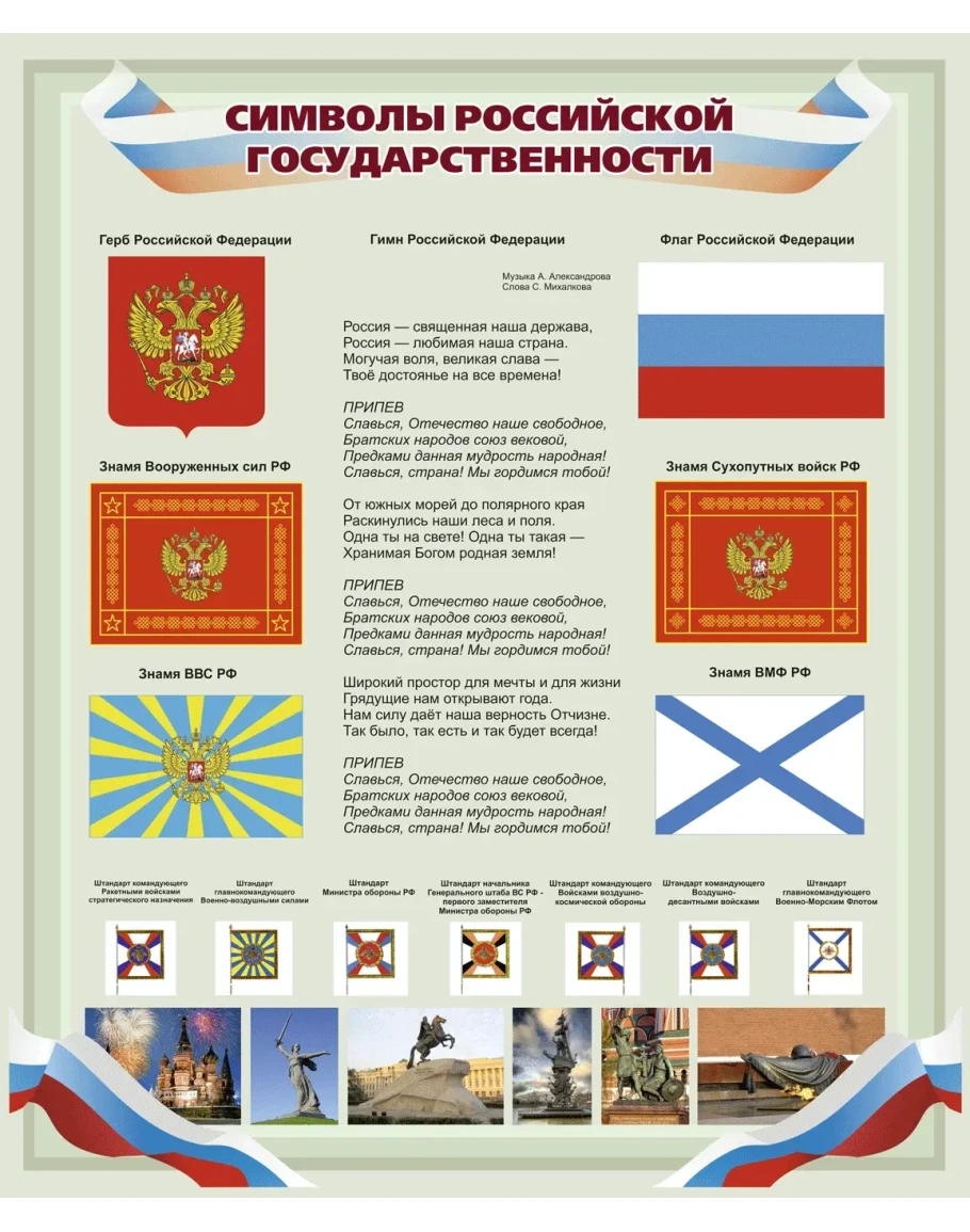 Плакат Символы Российской Государственности. Размер 1000х1200 в хорошем качестве. Для учебных заведений и уголков военной кафедры.
