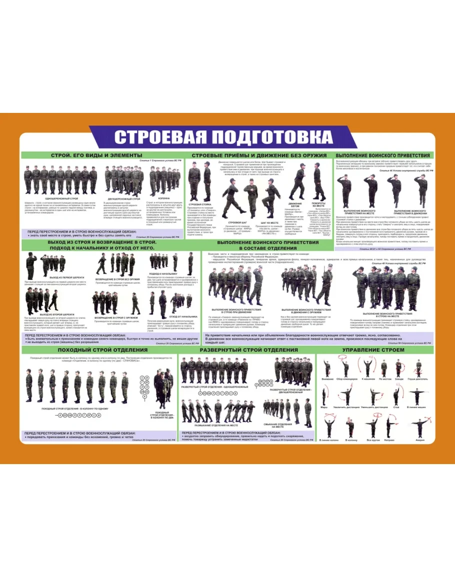 Плакат по строевой подготовке для учебных заведений. Формат 1300х1000. Векторно-графический формат. Все позиции можно перемещать произвольно.