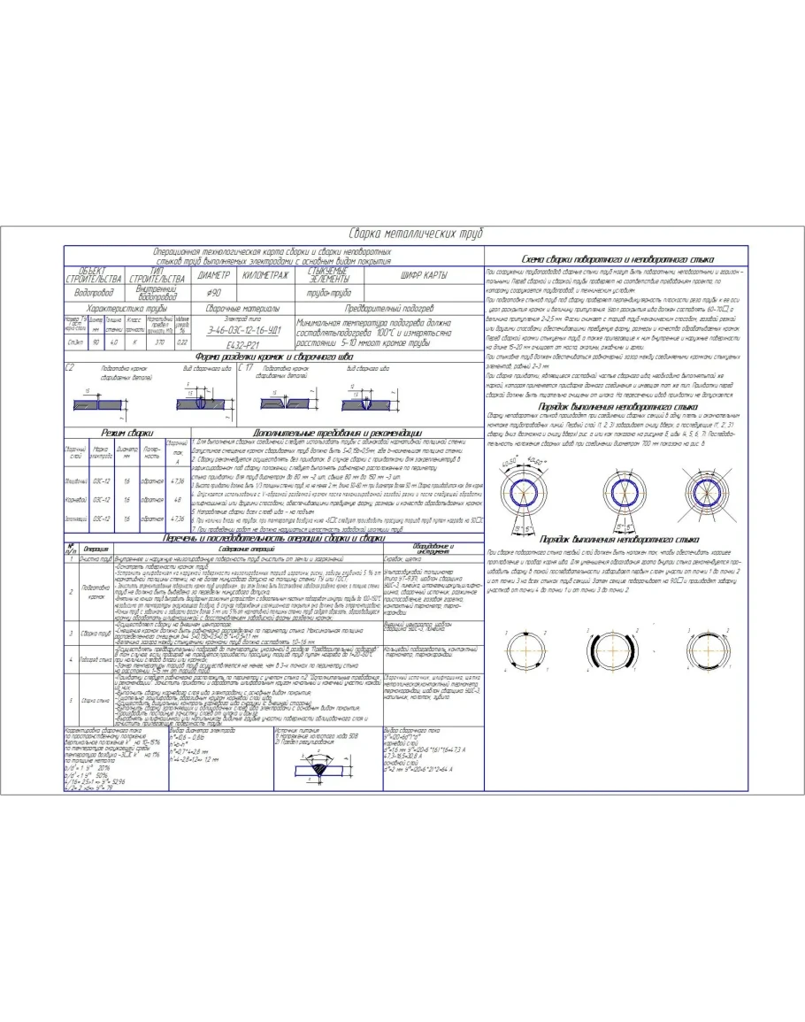 • Технологическая карта на сварку металлических труб