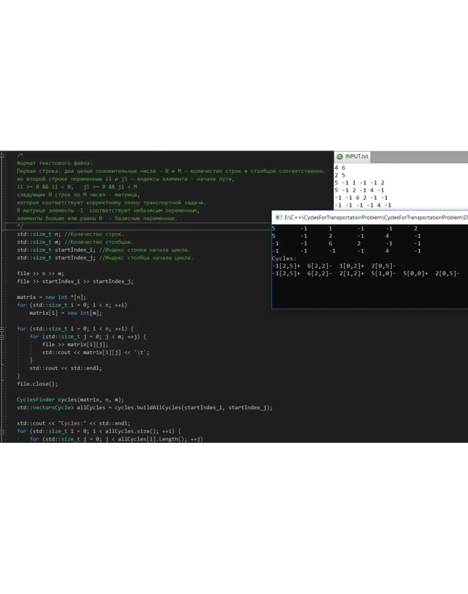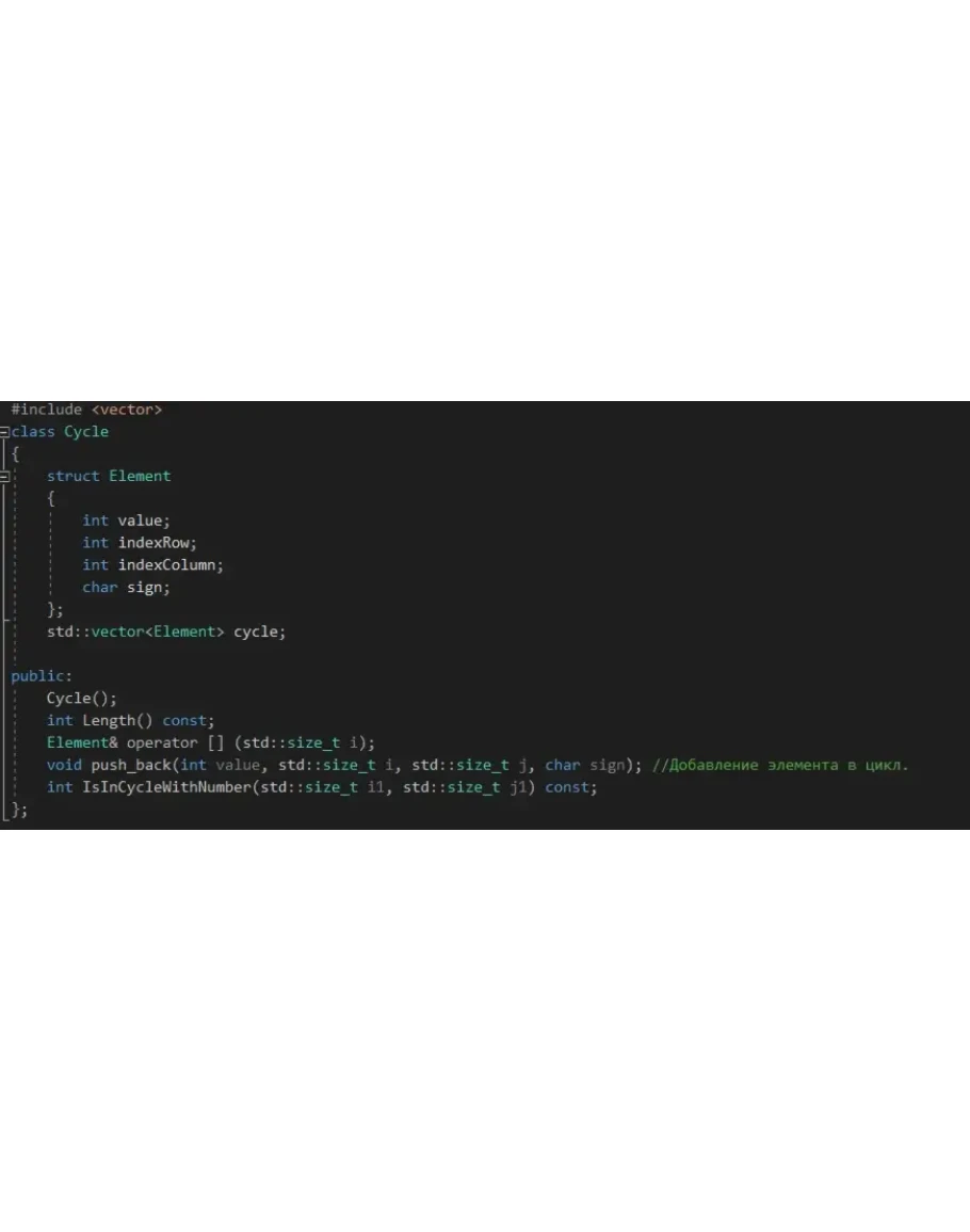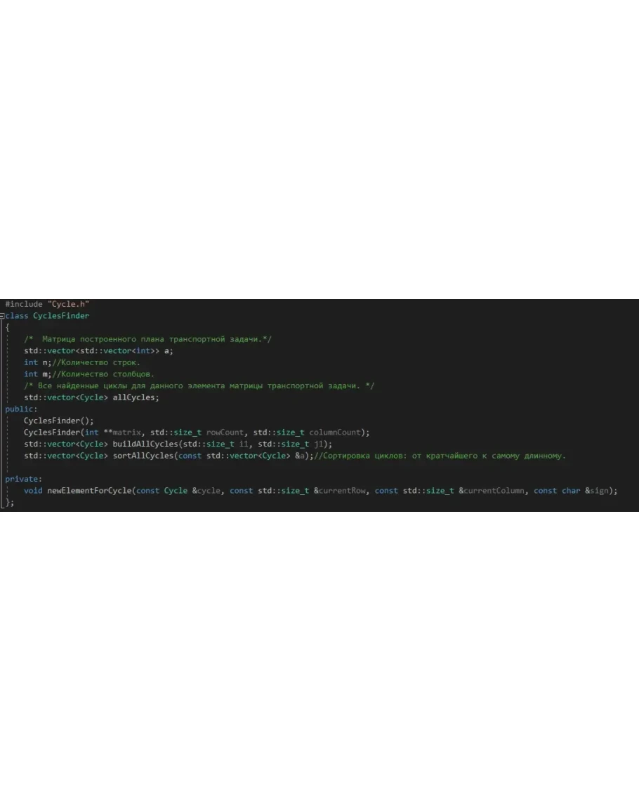 Класс для поиска цикла в транспортной задаче на языке C++.