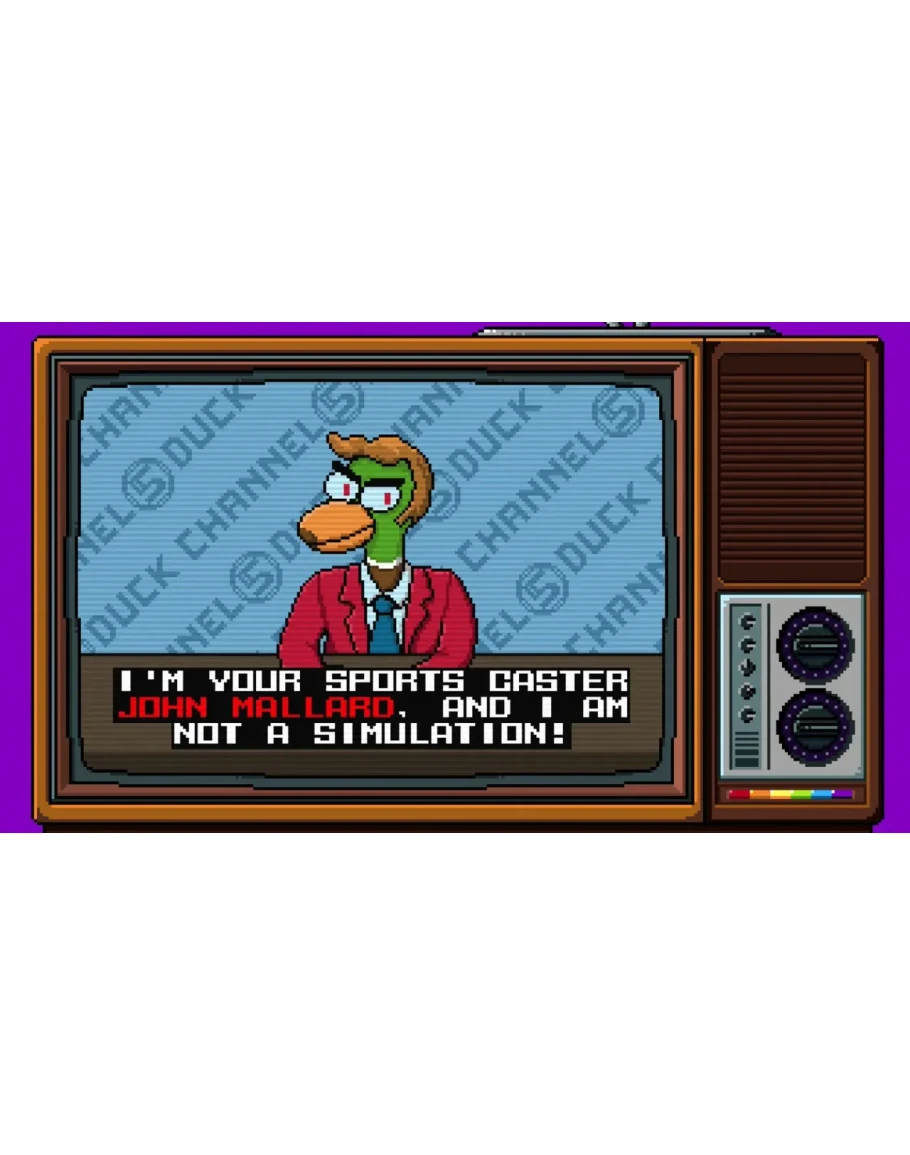 Enter the futuristic year of 1984, an age where ducks run wild in a frantic battle for glory. Blast your friends with Shotguns, Net Guns, Mind Control Rays, Saxophones, Magnet Guns, and much, much more. This is DUCK GAME. Don't blink.