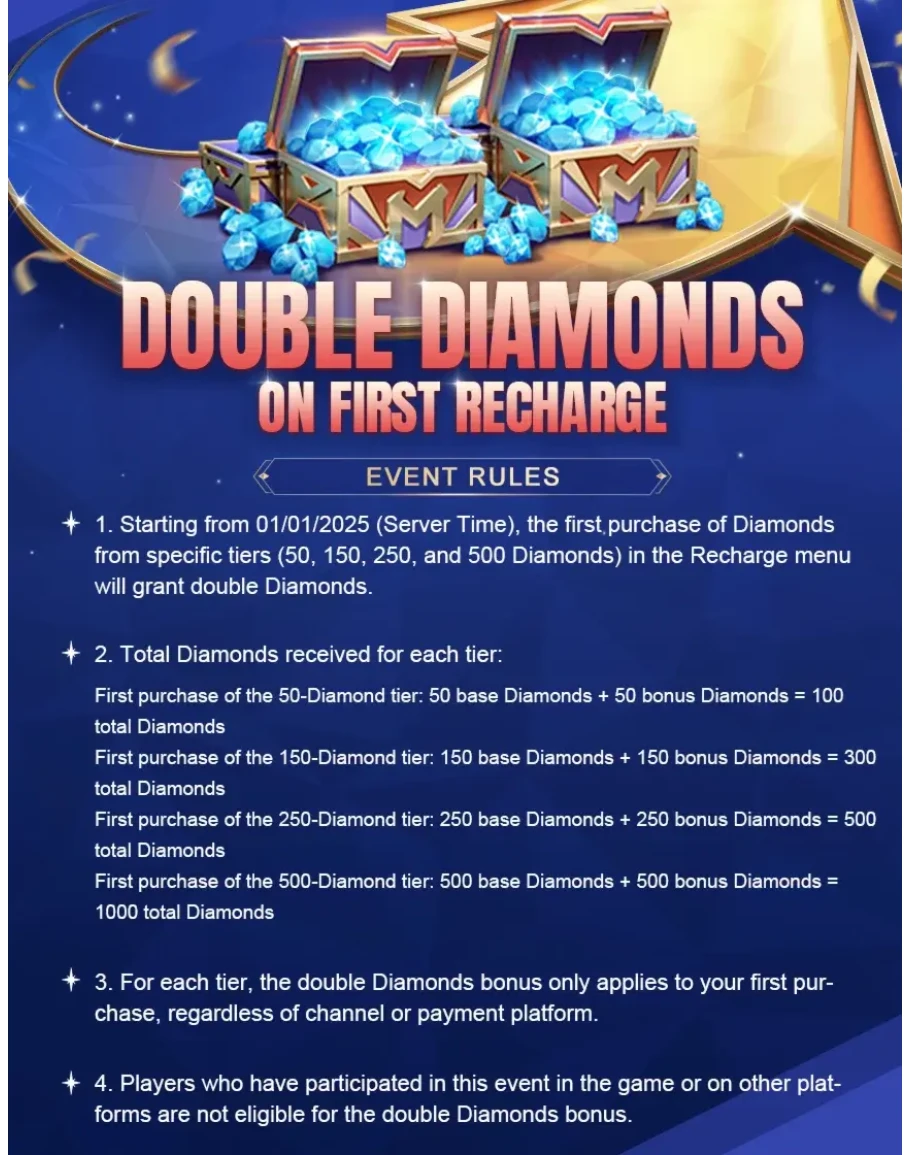 1. Начиная с 01.01.2025 (по серверному времени), при первой покупке бриллиантов
