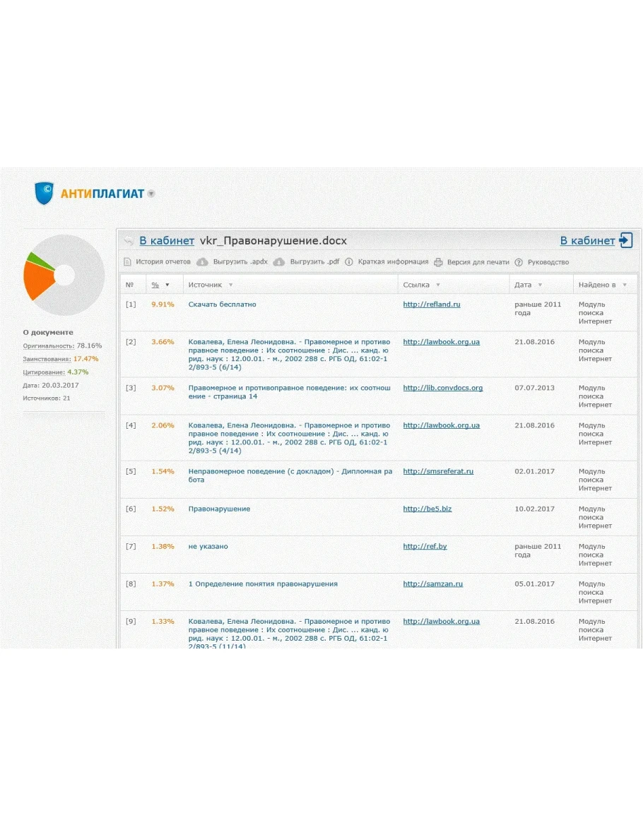 Готовая дипломная работа на тему: Правонарушение выполнена в 2017 году, уникальность (антиплагиат) - 78%.