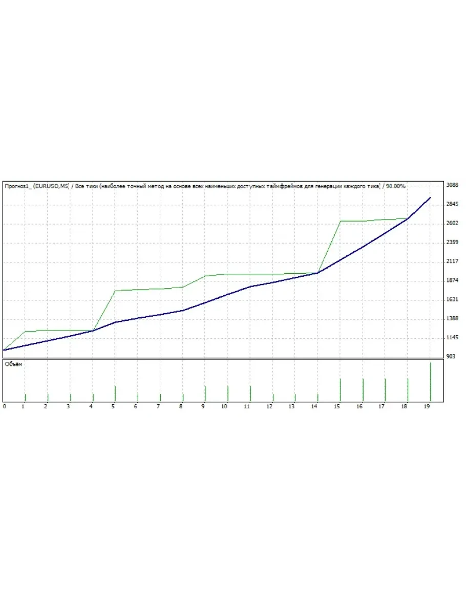 4. Четвертый этап в принципе и послужил основанием для названия советника, на этом этапе по результатам предыдущих трех этапов строится прогноз движения курса валютной пары на несколько баров вперед.