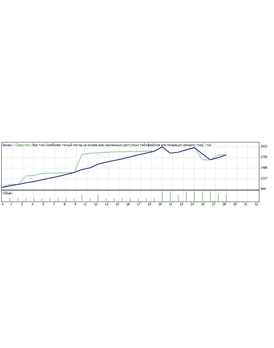 В самом советнике, для определения сигналов вхождения в рынок анализируется два таких индикатора с разными временными периодами. Результатом работы советника стало почти 200% увеличение капитала в течении одного месяца.