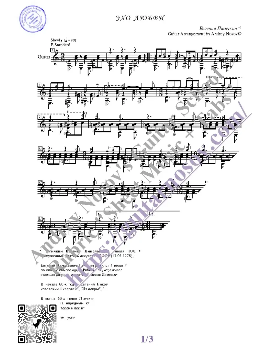 Товар состоит из двух частей (pdf / png*): 1 – Ноты с табулатурой; 2 – Ноты без табулатуры. Прилагается ссылка на скачивание mp3.