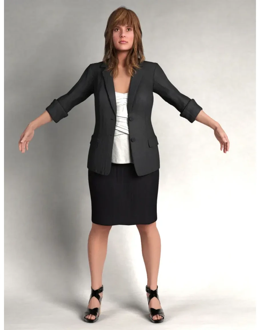 Трехмерная модель девушки с текстурами, и костной системой для анимации.