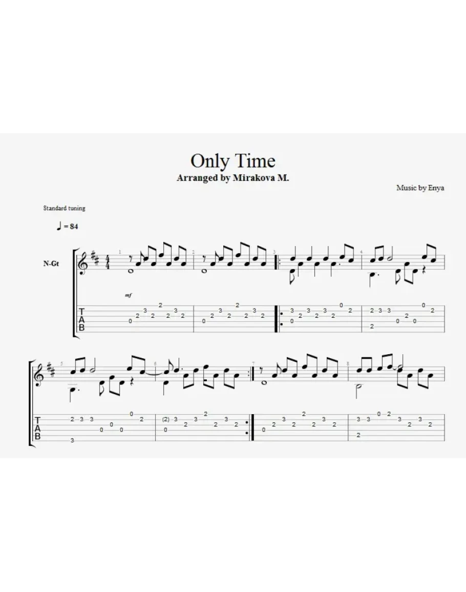 Авторская аранжировка для шестиструнной гитары от Марины Мираковой на композицию Enya "Only Time".