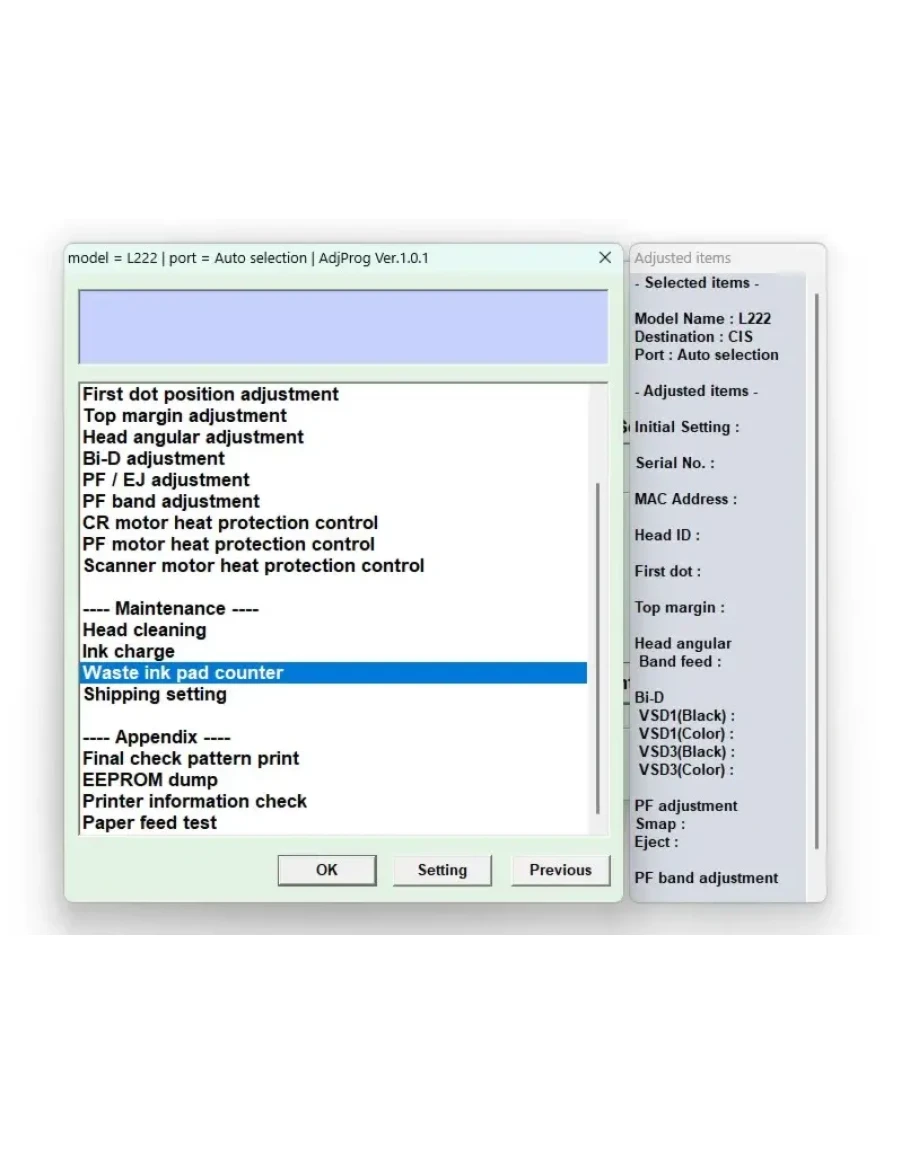 Сброс абсорбента Adjustment Programs Pack для принтеров EPSON: - L130 L132 L220 L222 L310 L312 L362 L365 L366