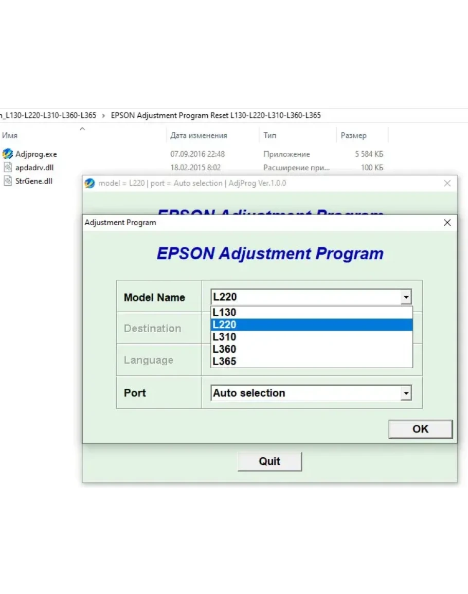 Версия для сброса ошибки переполнения памперса в моделях: L130 L220 L310 L360 L365