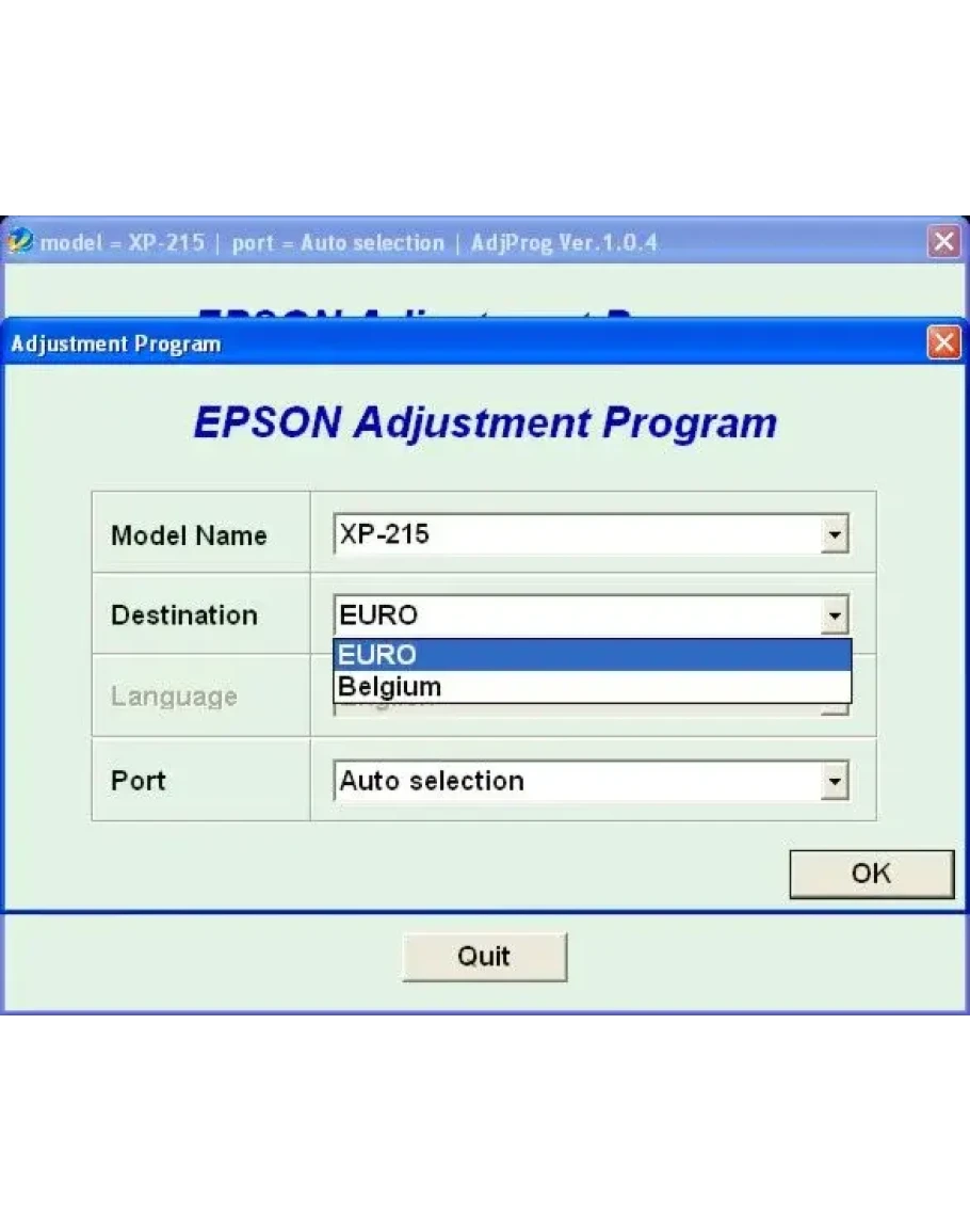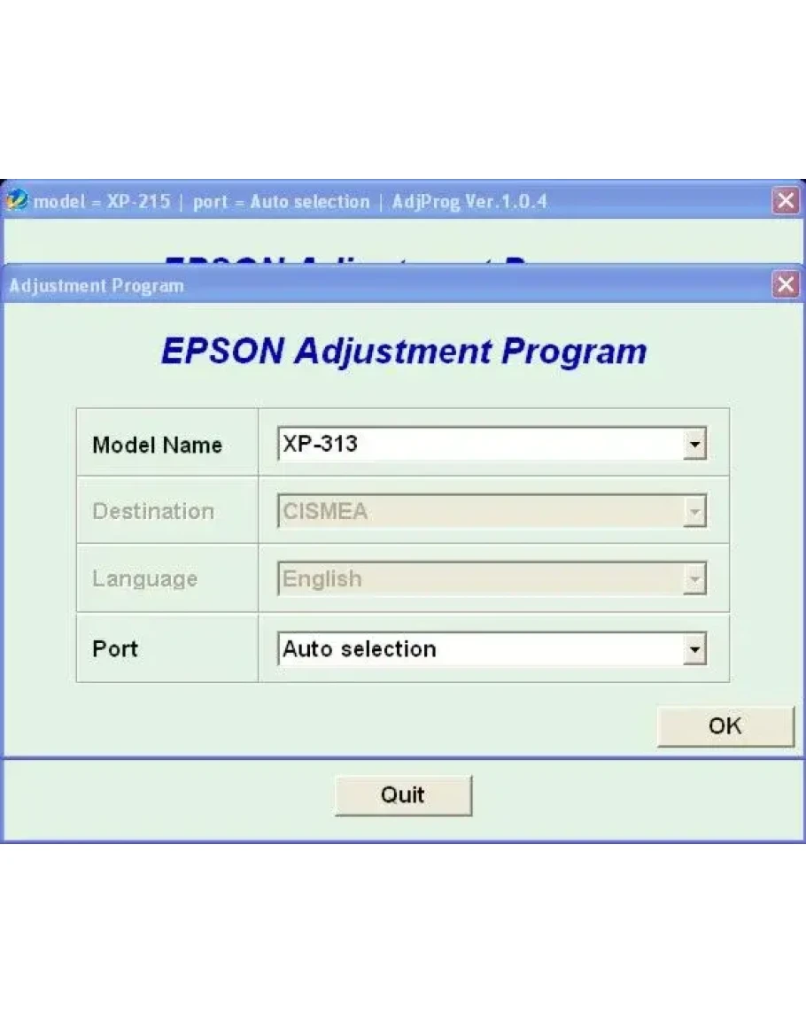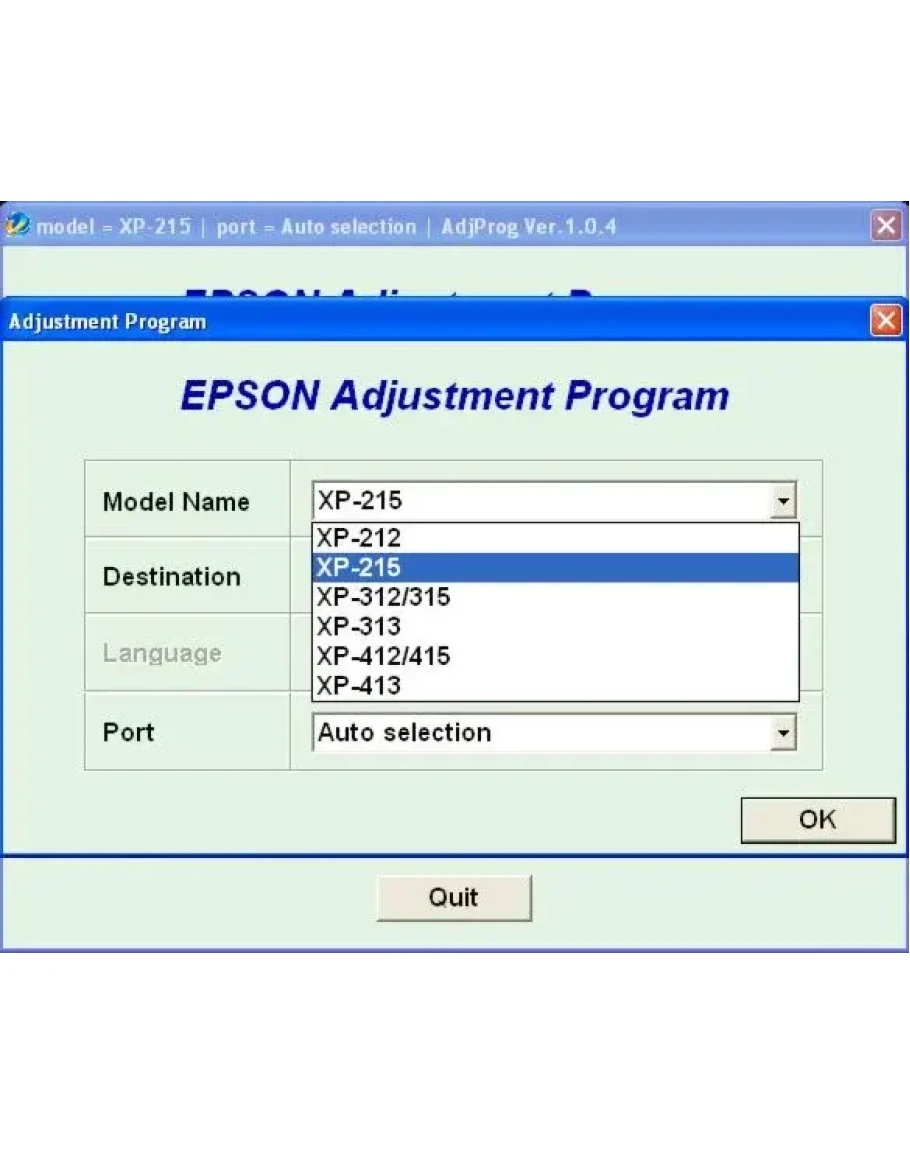 Epson XP212, XP215, XP312, XP313, XP315, XP412, XP413, XP415, Adjustment Program - это сервисная программа для указанных моделей принтеров, программа позволяет сбросить счетчик памперса (отрботка, абсорбер)и других функций