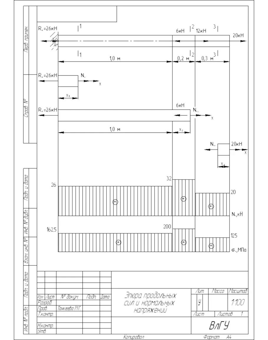 Сопромат. Эпюра №2.: «Расчет на прочность и жесткость при растяжении-сжатии прямого стержня». Задание 3. Задача 3. Вариант 2010