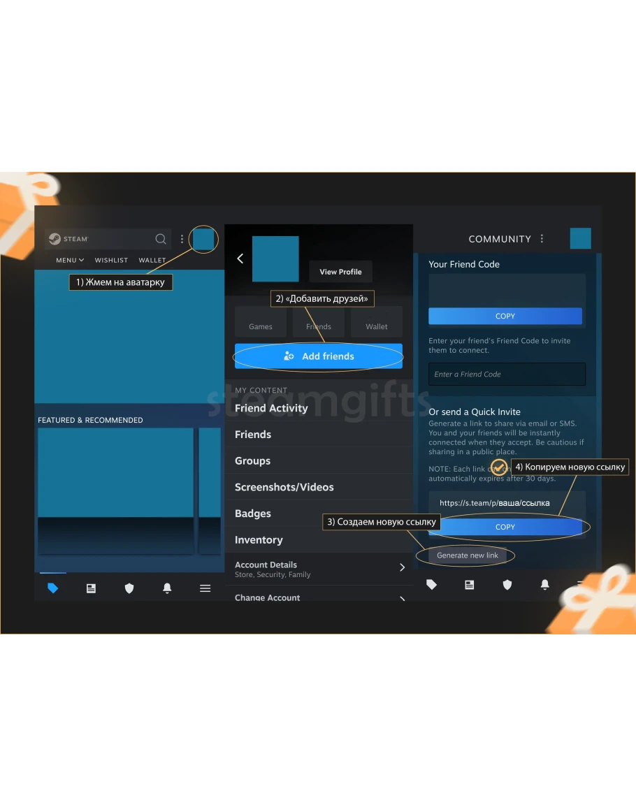 3️⃣ Получаете товар в виде подарка на ваш аккаунт. Если вы отправили нам быстрое приглашение - вам никакие заявки принимать не потребуется.