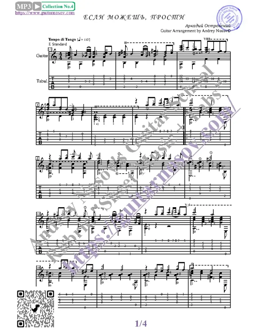 Кликните "Подробнее" для получения дополнительной информацииВашему вниманию предлагается композиция "Если можешь, прости (А.Островский)", предназначенная для исполнения на 6-ти струнной гитаре СОЛО. Запись выполнена нотами, сопровождена подробнейшей аппликатурой и продублирована табулатурой.