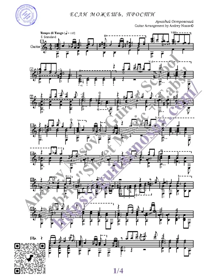 Товар состоит из двух частей (pdf / png*): 1 – Ноты с табулатурой; 2 – Ноты без табулатуры. Прилагается ссылка на скачивание mp3.