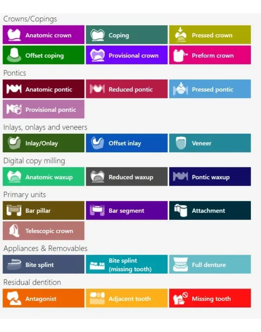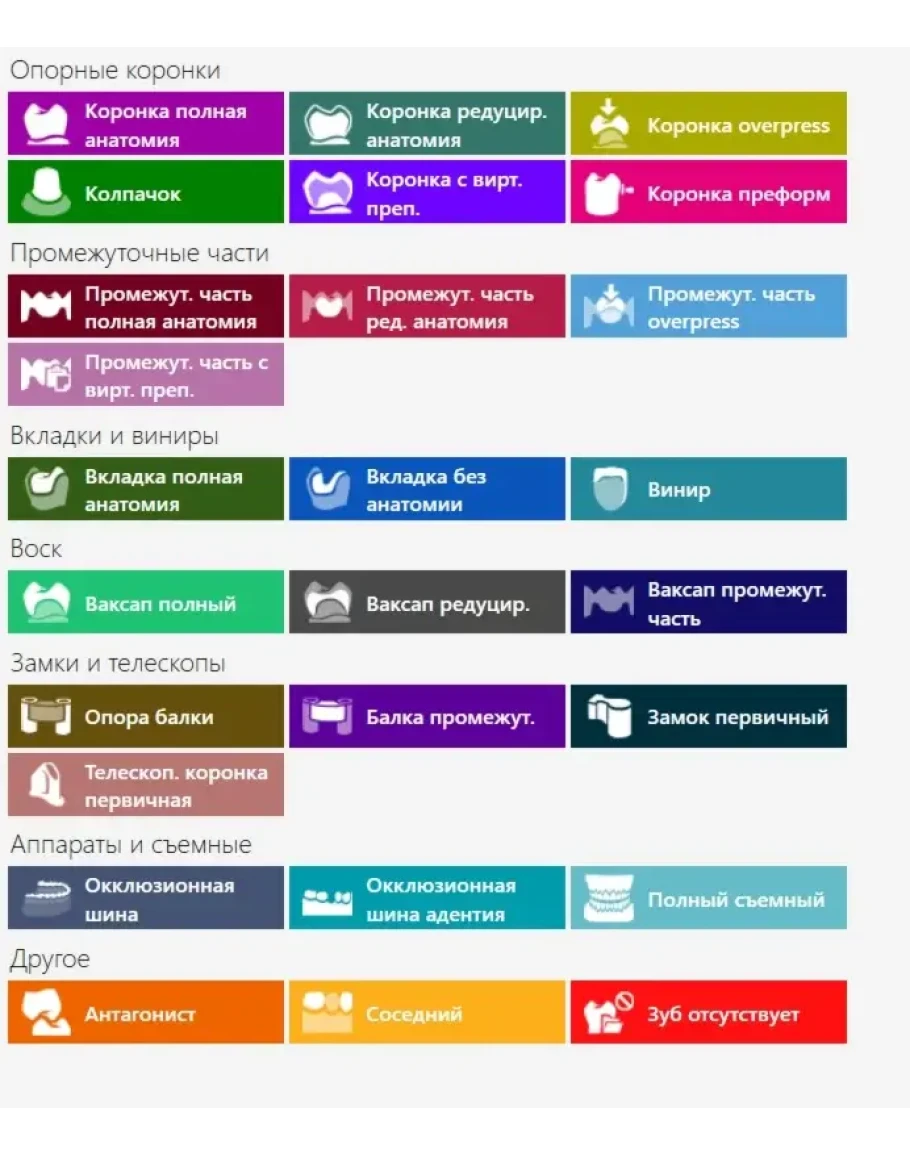 - дополнительные модули для работы с временными реставрациями и съёмными протезами