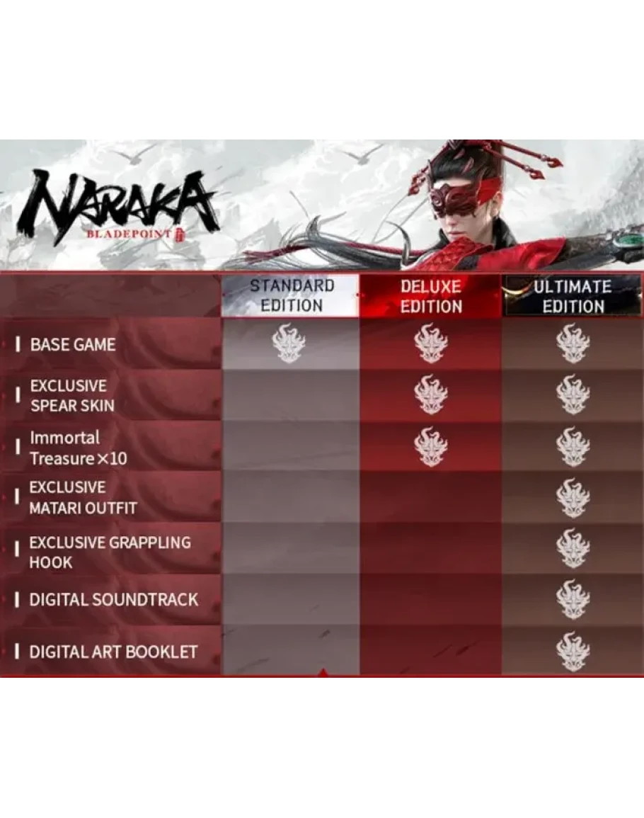 *Чтобы получить цифровый Арт-буклет и саундтрек, перейдите в https://www.narakathegame.com/account/#/account, и войдите в свою учетную запись Xbox Live, а затем получите их в МОЕМ АККУАНТЕ.*
