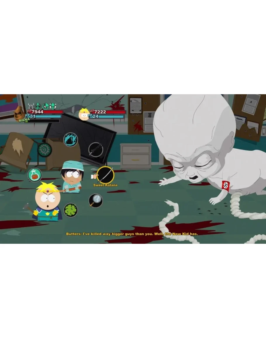 В боях четвероклашек родится герой, который спасет Южный парк. Вооружитесь легендарным оружием и одолейте кальсонных гномов, хиппи и другие силы зла. Найдите Палку Истины и займите место рядом со Стэном, Кайлом, Картманом и Кенни в этом потрясающем приключении.