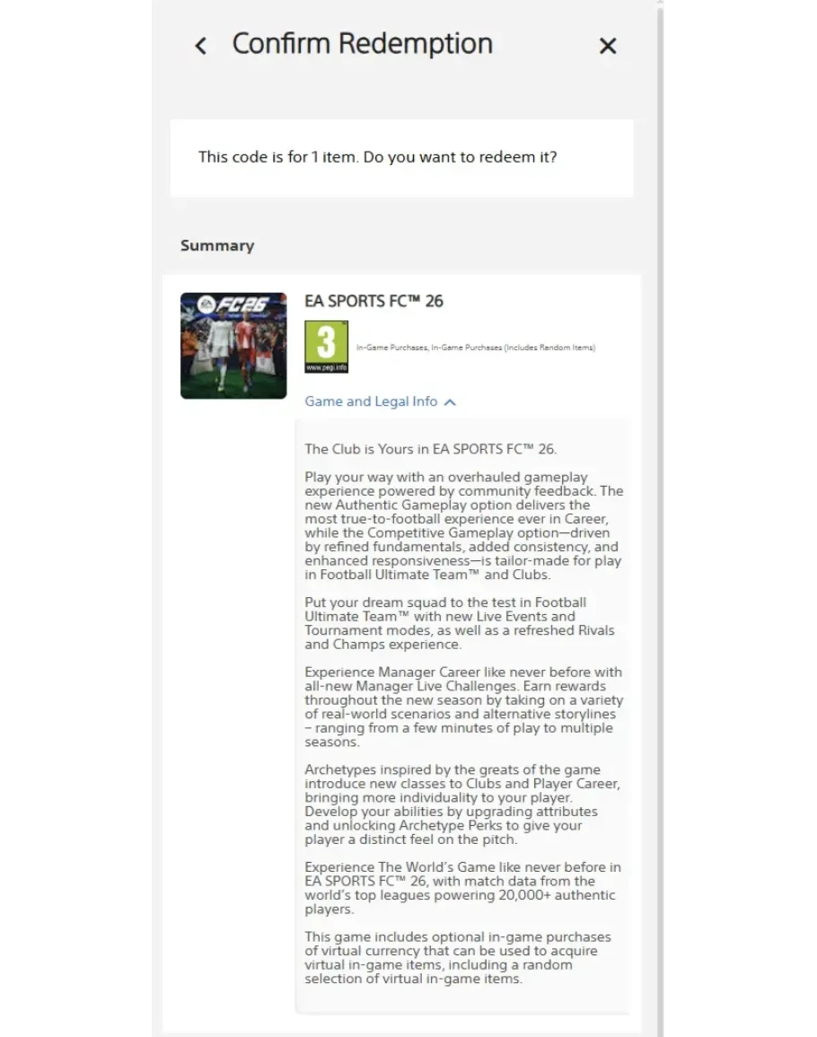 Сразу же после оплаты вы получаете цифровой код (ключ) EA SPORTS FC 26 PS5. Активируется на ваш аккаунт. (инструкция по активации ниже).