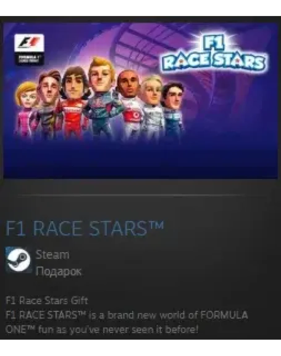 Любимые звезды и команды FORMULA ONE™ ждут вас в новом мире гонок, полном развлечений! Устремитесь к клетчатому флажку на знаменитых трассах, к которым мы добавили захватывающие дух прыжки и хитрые короткие пути, собирайте и используйте множество потрясающих бонусов, чтобы обойти соперников! Играйте вместе с друзьями на разделенном экране (до четырех участников) или онлайн с игроками по всему миру (до 12 участников). Участвуйте в разнообразных чемпионатах в режиме карьеры. F1 RACE STARS™ – самый скоростной путь к развлечениям, с полным составом FORMULA ONE!