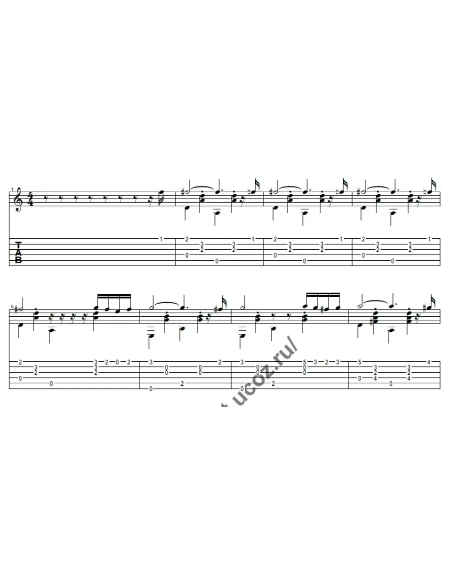 В состав товара входит нотная табулатура для 6-струнной гитары в формате .pdf на 5 листах.