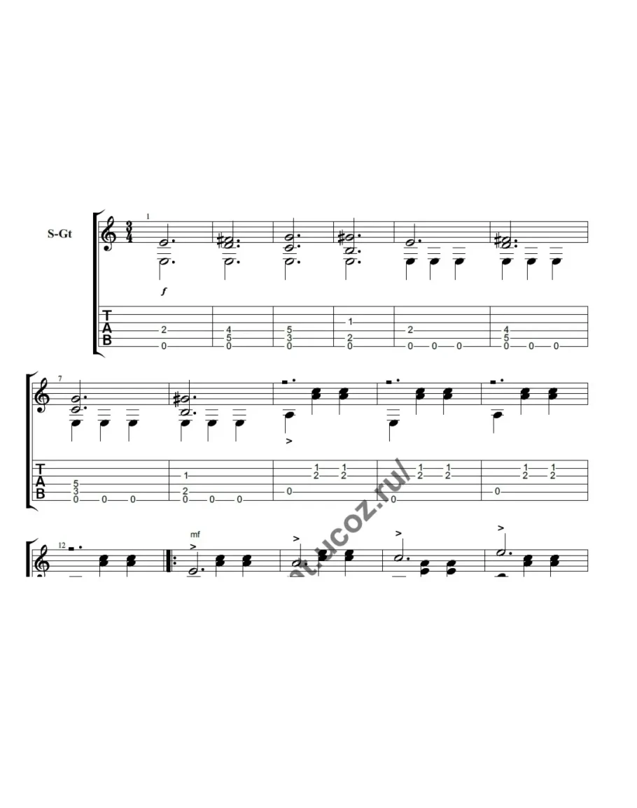 В состав товара входит нотная табулатура для 6-струнной гитары в формате .pdf на 10 листах.