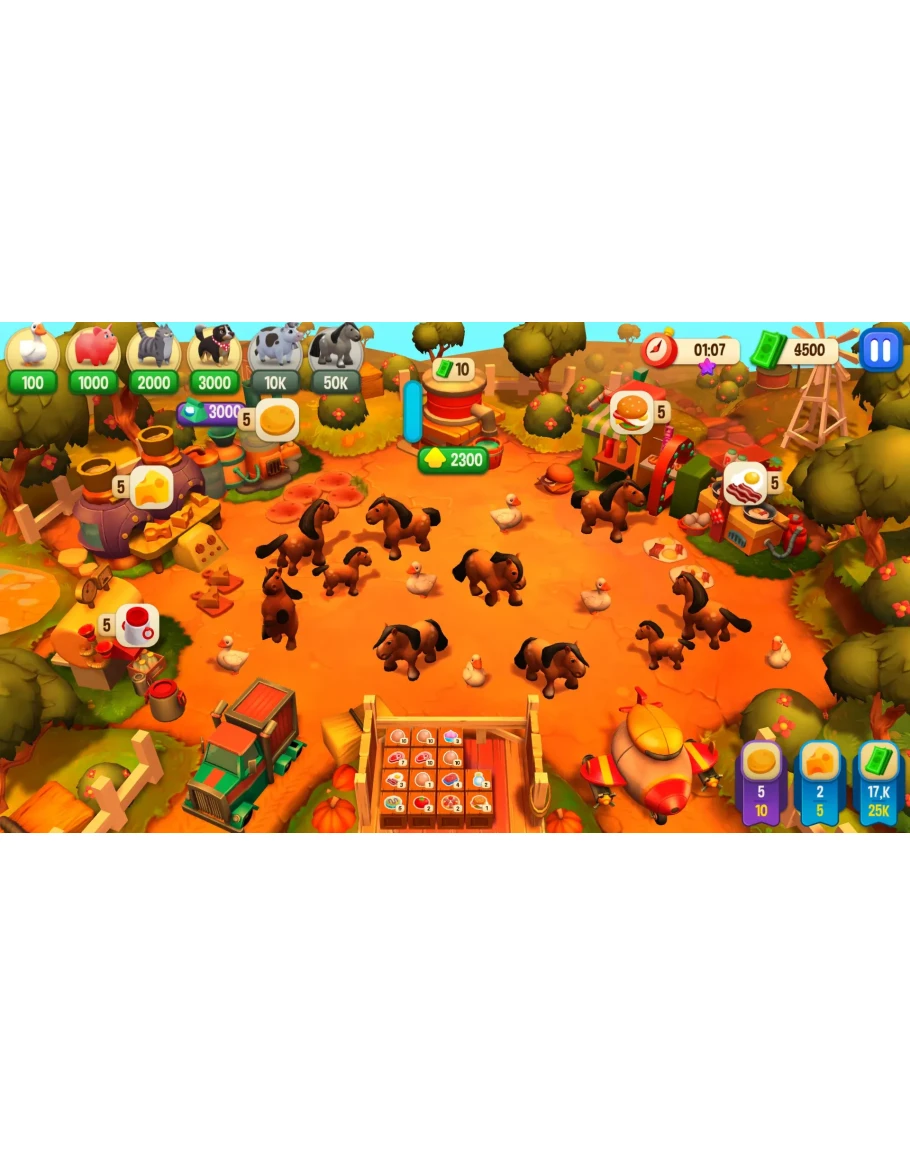 Выращивайте и создавайте ресурсы для торговли с городом, ухаживайте за животными и постройте ранчо мечты в знаменитой Весёлой Ферме от Alawar на современный лад!