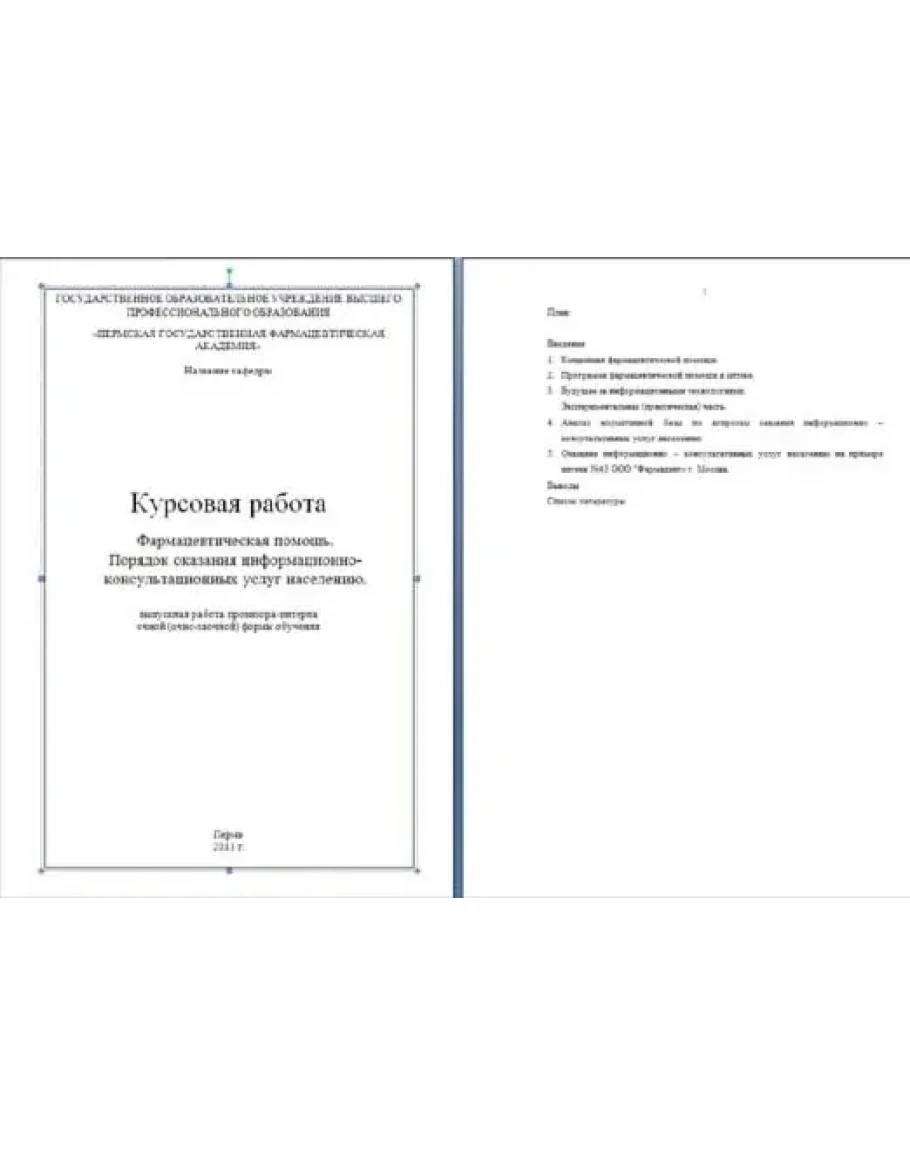 Курсовая работа "Фармацевтическая помощь. Порядок оказания информационно-консультационных услуг населению" (Пермская фармацевтическая Академия)