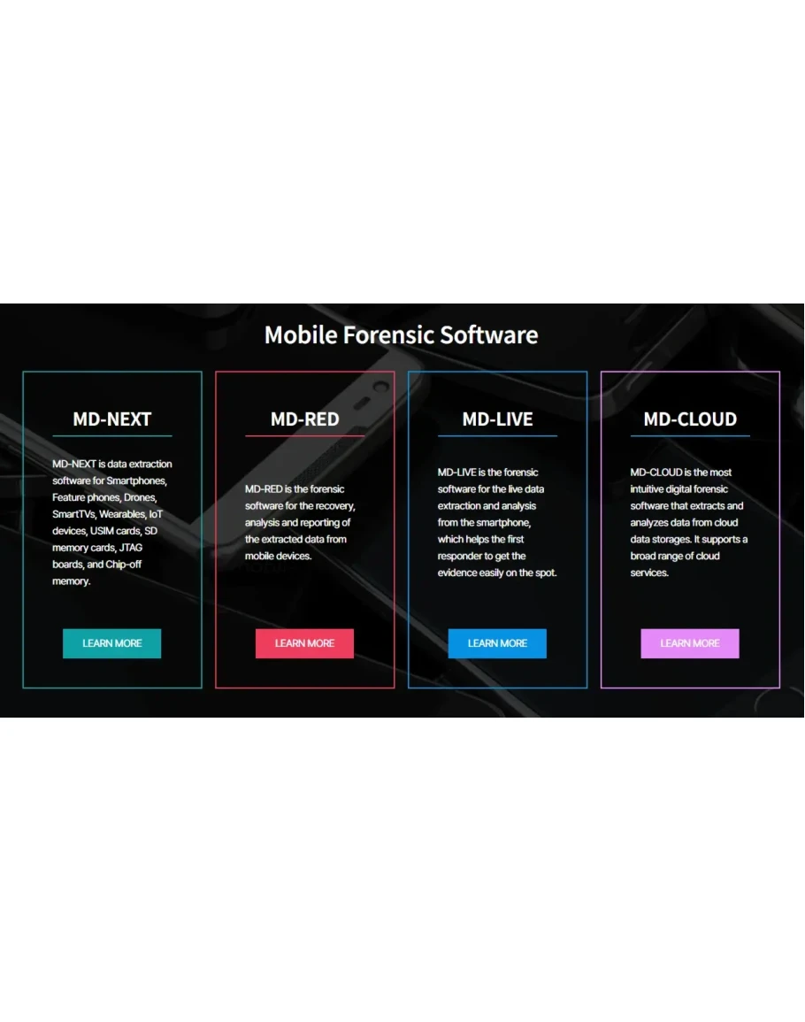 • Передовые технологии: Поддержка сложных методов извлечения (Chip-off, JTAG), использование AI (MD-VIDEO AI), анализ уникальных источников данных (MD-DRONE).