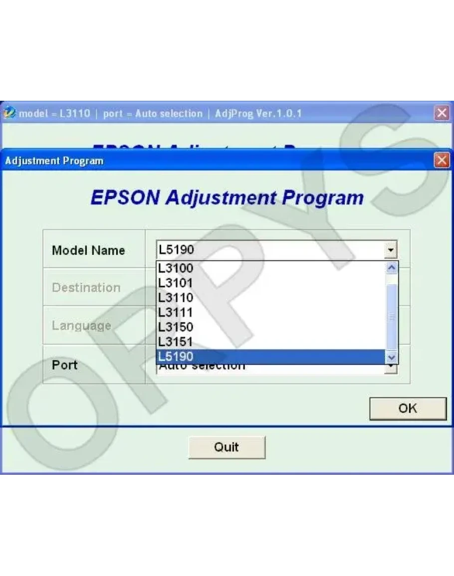 Epson L1110 L3100 L3110 L3150 L5190 Adjustment Program
